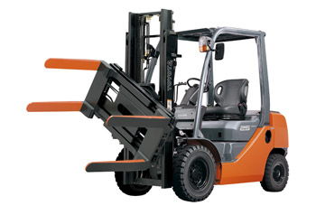 貨叉上下360度旋轉(zhuǎn)。托盤可以當(dāng)場回收的高效率型。